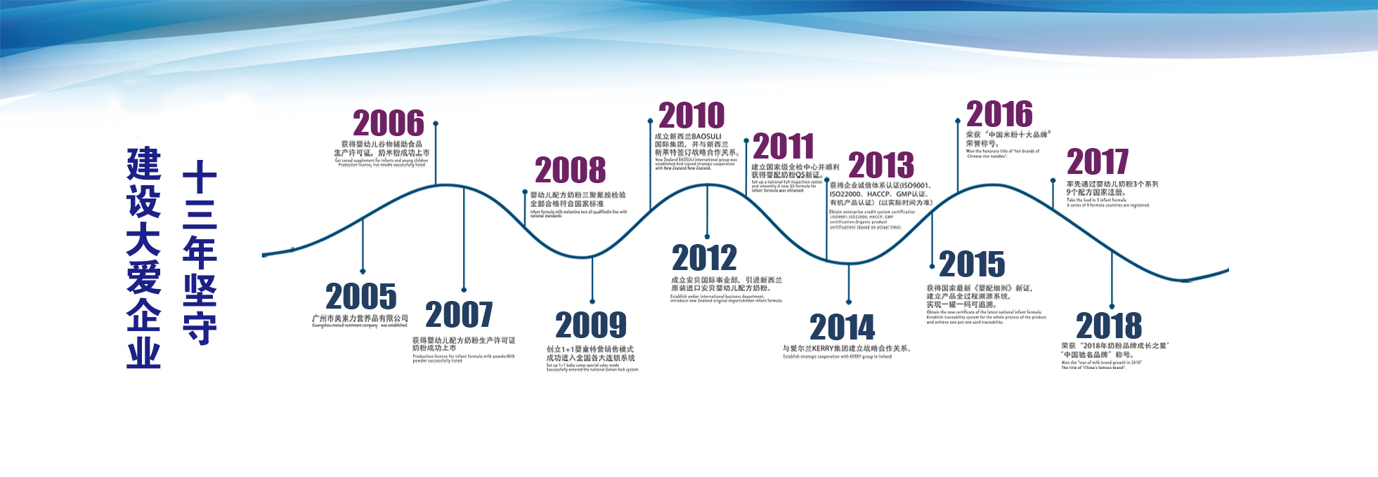广州市美素力营养品有限公司成立,宝素力奶粉及奶米粉研发并上市。