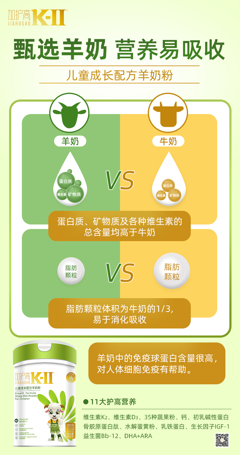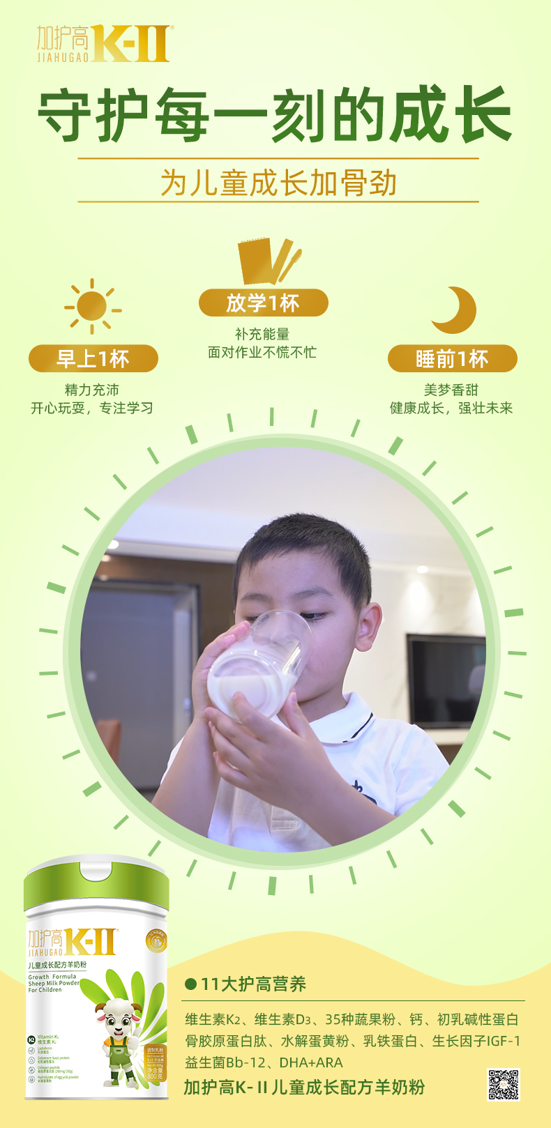 孩子的成长只有一次,这个过程是既短暂又漫长的,加护高k-ll儿童成长配方羊奶粉用科学的方法为孩子补充营养,和爸爸妈妈一起呵护孩子成长!